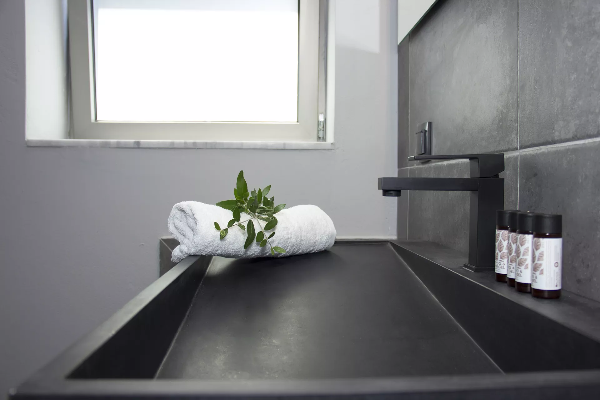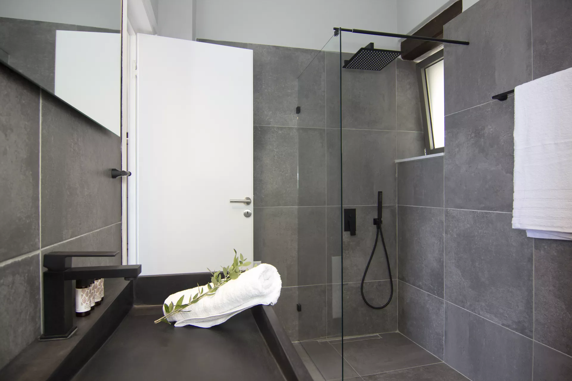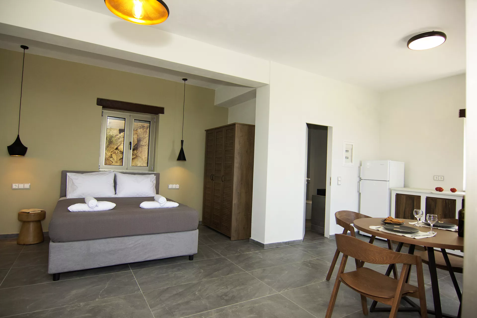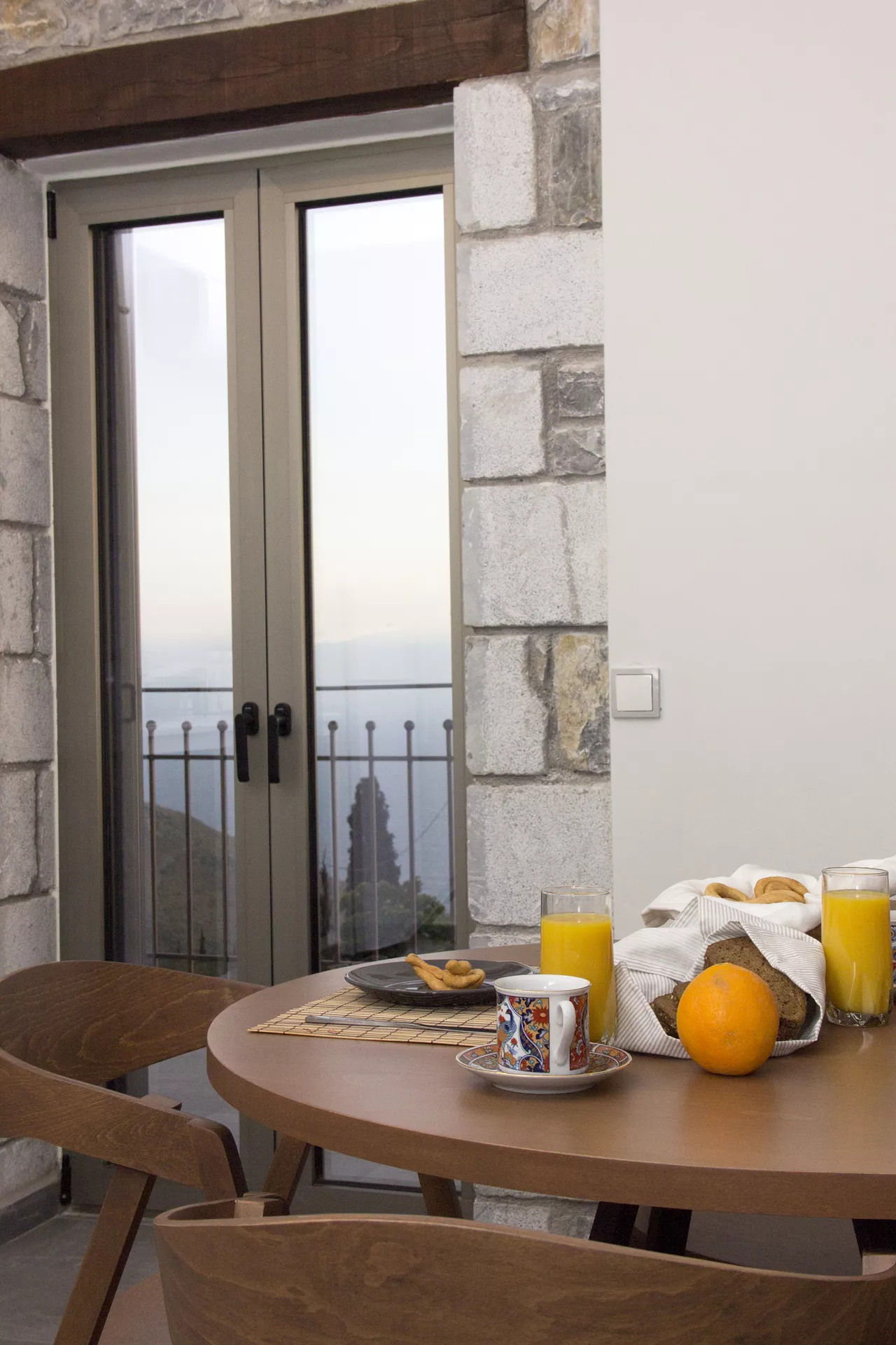 On the same level is a king-size double bed, a wardrobe, free Wi-Fi, air conditioning, a bathroom with a walk-in rain shower, hair and body care products, a terrace with a stunning view of the sea and the mountain and can accommodate from 1 up to 4 people. Relax on your private terrace and keep forever the moments when the Greek sun of Mani paints the Messinian gulf in golden hues...